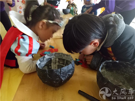 中大班級部的寶貝們彩繪面(mian)(mian)具,有佐羅,天鵝,皇(huang)冠等等面(mian)(mian)具,手拿水彩筆,孩子們可是過足(zu)了設計癮。