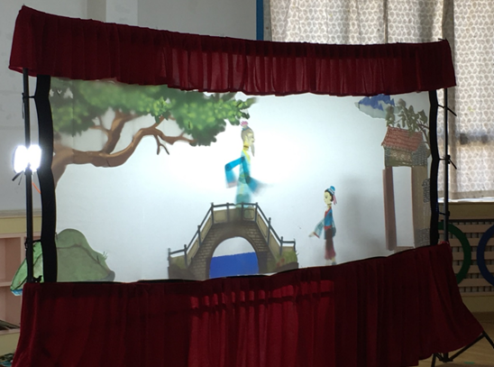 不(bu)一(yi)(yi)(yi)會(hui)(hui),只見(jian)表(biao)演(yan)者在半(ban)透(tou)明(ming)的白(bai)布后,貼近幕布熟練(lian)地擺弄(nong)皮影道具,伴隨著鑼鼓(gu)聲,表(biao)演(yan)者繪聲繪色(se)地表(biao)演(yan)著故事情節。只見(jian)劇中角(jiao)色(se)一(yi)(yi)(yi)會(hui)(hui)兒(er)騰云駕霧,一(yi)(yi)(yi)會(hui)(hui)兒(er)做出各種高(gao)難動作(zuo),變幻莫測。孩子(zi)們第一(yi)(yi)(yi)次看到(dao)這樣的表(biao)演(yan)形(xing)式,都瞪(deng)大了(le)眼睛,精彩之處不(bu)禁鼓(gu)掌歡呼(hu)。
