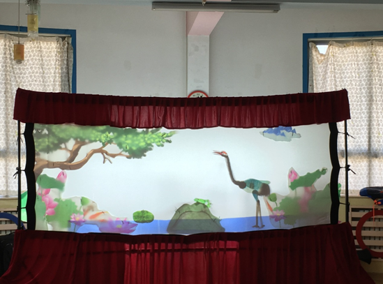 表演者共為小朋友們帶來了四個故事:《孫悟空大戰紅孩兒》 ,帶我們回顧了經典的神話故事;《金斧頭 銀斧頭》 ,使小朋友懂得了做人需要誠實的重要品質,;《仙鶴和烏龜》,增強了小朋友們解決問題的信心,在困難面前不畏首畏尾、裹足不前;最后的《熊出沒》劇目是孩子們最喜歡的,表演全程,孩子們不斷的拍手叫好。