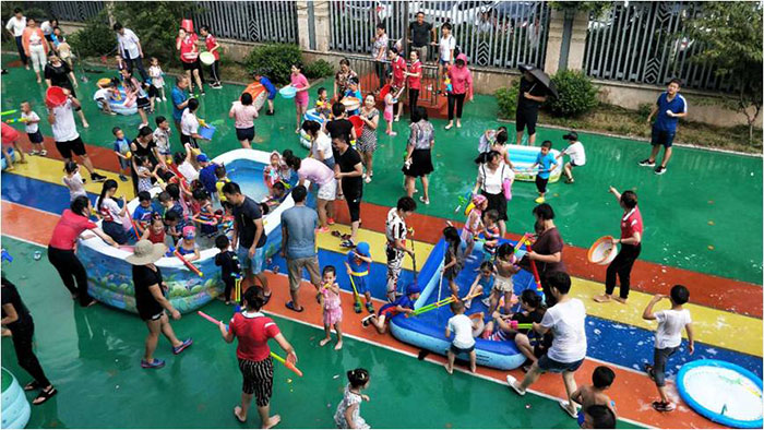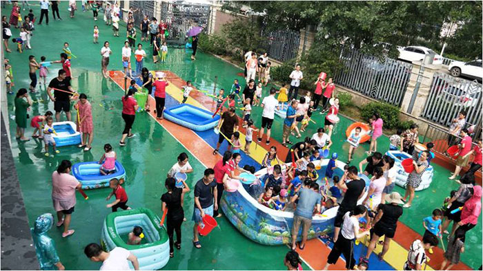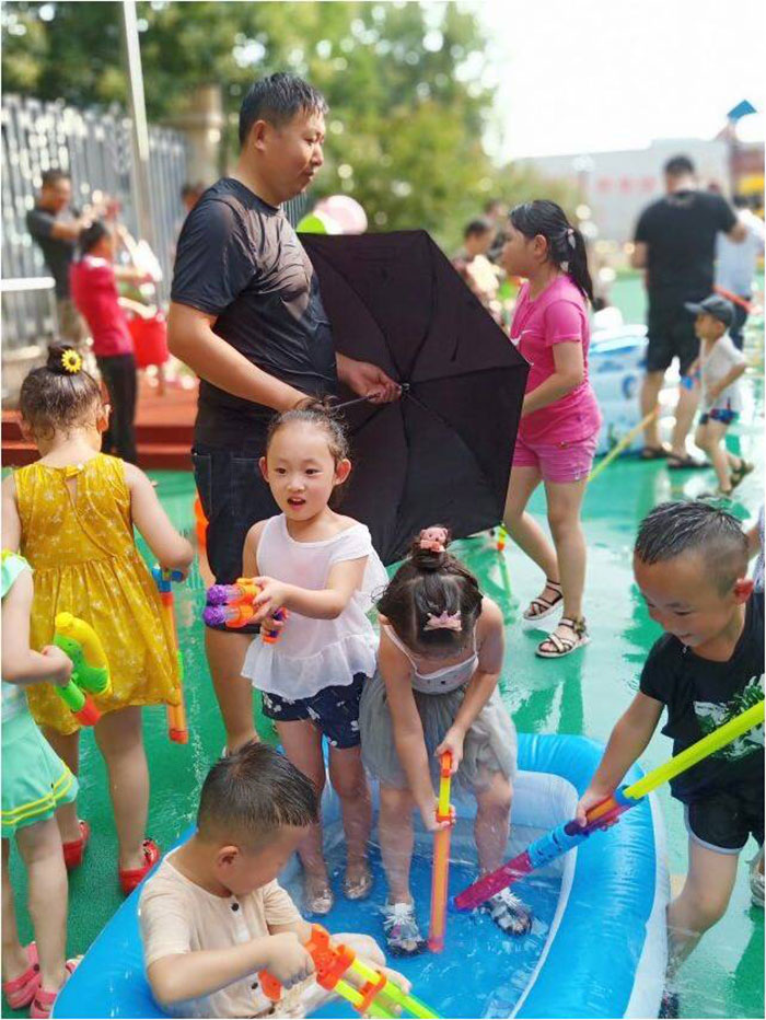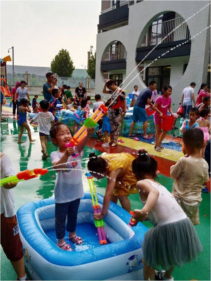 為了讓孩子們在活動中盡情玩耍,家長們做了充足的準備:泳衣、水瓢、水盆、水槍,孩子們“武器“在手,蓄勢待發。