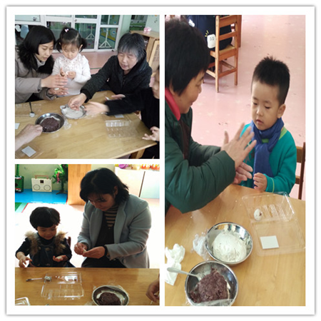 下面該輪到我們的孩子們大顯身手了,雖然他們做的有的圓,有的方,有的笑開了臉,露出了甜甜的餡兒,有的······但孩子們看到自己動手做出的元宵,臉上露出了自豪的神情,別提有多高興了。
