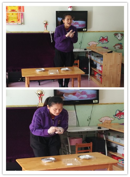 接下來就是我們的課程了,孩子們在老師的指導下,了解元宵節的來歷;分別從“看、玩、吃”三個方面了解元宵節的風俗習慣;最后了解了做元宵的整個過程:食材介紹、和面、搓元宵的方法,并親手制作元宵。讓我們一起來看看吧······