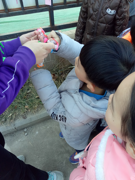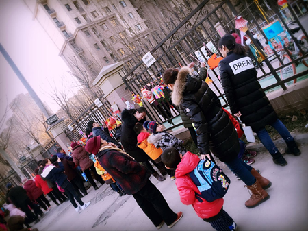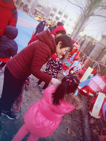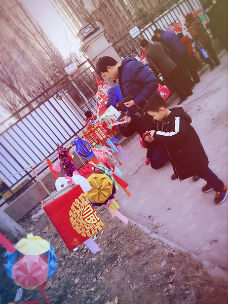 放學時分,家長們也加入到賞花燈,猜燈謎的行列中,爺爺奶奶,姥姥姥爺,爸爸媽媽陪我一起猜燈謎嘍!