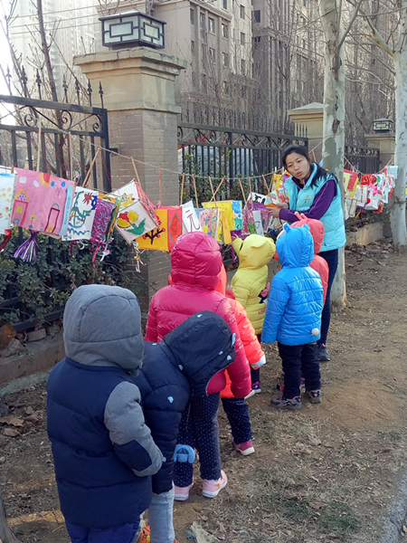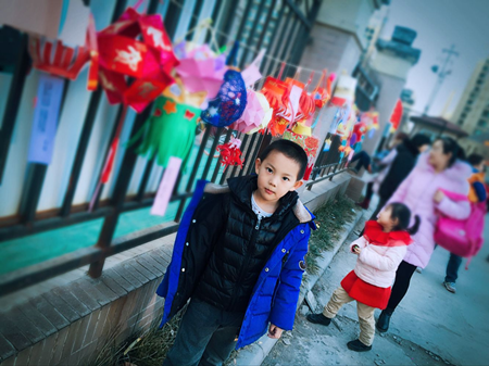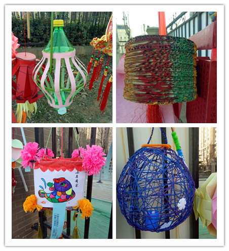 看,五顏六色的元宵花燈,那可是家長和孩子們精心制作而成的,形式不同,制作材料不同,看,有漂亮的小兔燈、小雞燈,紅包燈······。一盞盞獨特、絢麗的元宵燈,匯成了燈的海洋。