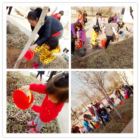 小朋友們多么認真,她們年齡雖小,但環保意識可強呢!個個都積極參與勞動,用自己的雙手澆灌著一棵棵小樹苗······