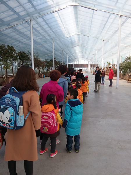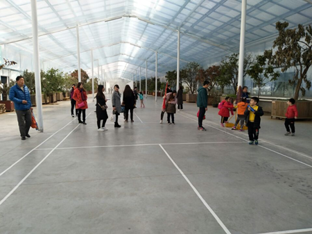 隨后孩子們參觀了學校的特色陽光房,陽光房是連接教學樓與宿舍的房子,遇到陰雨天氣孩子們可以通過這里到達宿舍,避免被雨淋濕,當遇到糟糕的霧霾天氣時,孩子們還可以在這里進行戶外活動。