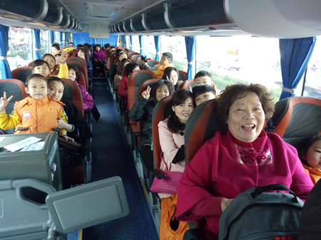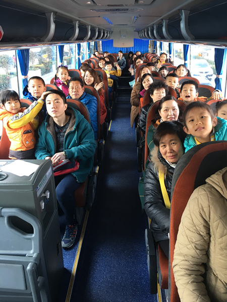 坐在幼兒園統一安排的大巴車里,孩子們都很興奮,欣賞著沿途的風景,期待著快一點到達目的地。