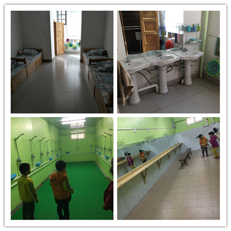 離開陽光房,在張老師的帶領下孩子們來到了學生宿舍,參觀了他們的浴室。家長和孩子們很興奮,更加引起了孩子們對小學生活的向往。
