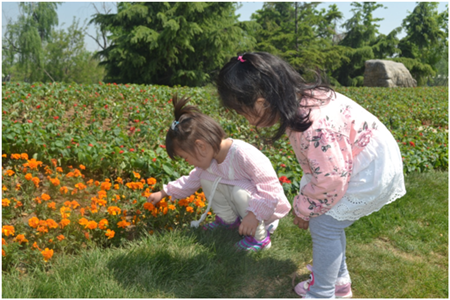 我們的大部隊在導游的引領下,步入了花海。綠油油的草地,五顏六色的花朵,還有陣陣涼風夾帶著絲絲的花香,孩子們草坪玩耍,家長們欣賞美景,不亦樂乎!