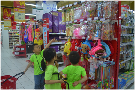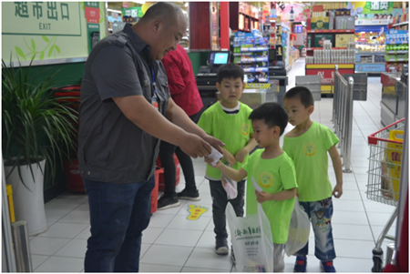 中班級部“走進社區”主題活動——“媽媽的禮物”。我們在母親節前期,號召幼兒“變廢為寶”,將家里的廢舊物品或紙箱紙盒收拾好換成錢,或者通過自己的努力及社會實踐活動賺到錢,將賺來的錢給媽媽買成禮物。5月9日到5月12日。我們帶領中班幼兒走進超市,為媽媽購買母親節的禮物。讓孩子們自主選擇,全程由幼兒獨立完成。