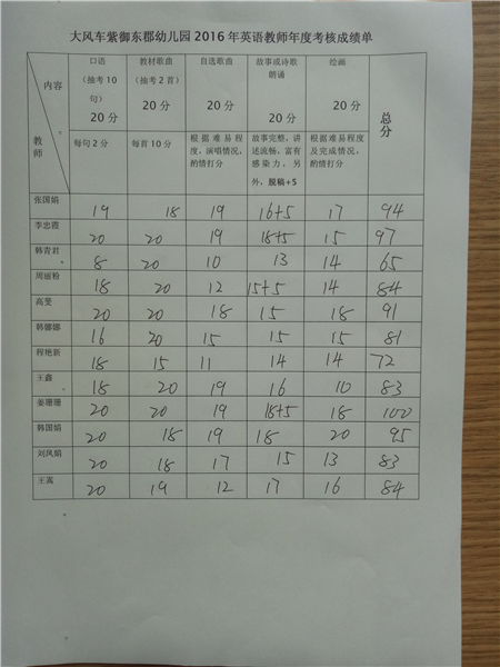 在搞好教研的基礎上,園所把對英語教師的各項考核放到了日常教學活動中,對老師的備課,常用口語的學習及日常應用進行監督和相應的考核,從而進行查漏補缺,動態量化把握教師上課情況。
