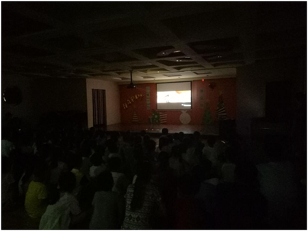 主持人介(jie)紹今晚的(de)(de)活(huo)動安(an)排,好期待,除了能找(zhao)到期待已(yi)久(jiu)的(de)(de)成長禮之外,幼(you)兒園還給(gei)我們備有(you)可口的(de)(de)晚餐水(shui)餃和(he)水(shui)果沙拉(la),還能欣賞好萊塢大片,哈(ha)哈(ha)哈(ha)!So,happy!