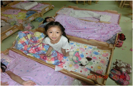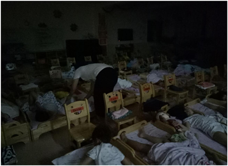 深夜里,老師們(men)巡視給孩子們(men)蓋(gai)被子。