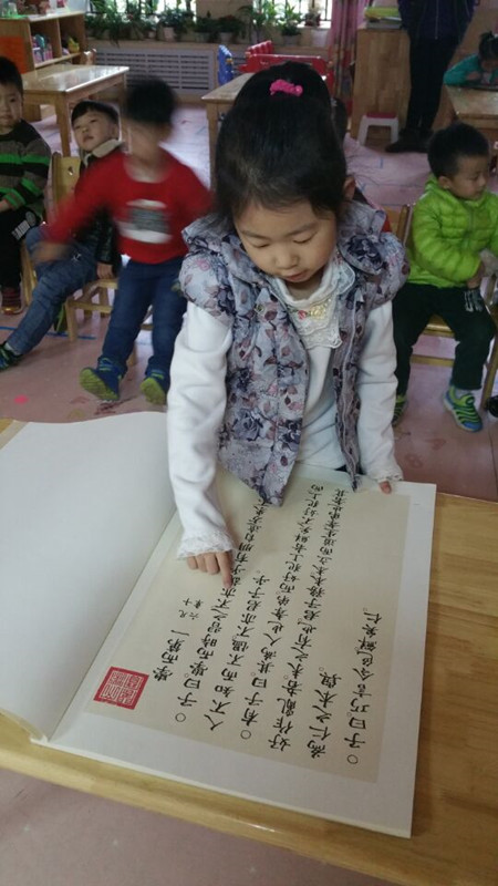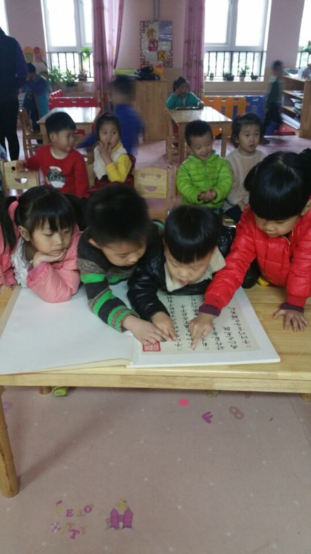 “子曰:學而時習之,不亦說乎;有朋自遠方來,不易樂乎。”小朋友雖然不懂,但是也認真的跟讀著,相信等你長大一定會明白其中的道理。