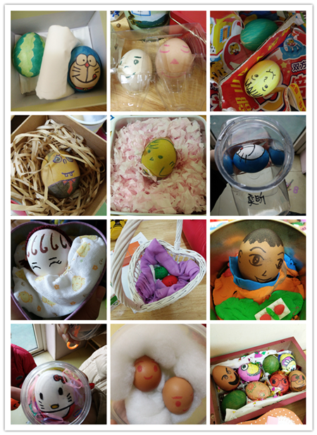 看看小朋友和家長一起制作的蛋寶寶漂亮吧,還給他們做了溫暖的家,真是很用心。