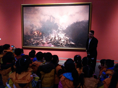 參觀美術館的目的是培養良好的審美感,從小受到文化的熏陶,培養藝術氣息。當孩子們看到作品時會進行觀察,畫面上有什么呢?再由講解員給予講解,知道了在作畫時物體的大小比例,知道了近大遠小等等。孩子們還在欣賞作品時了解了歷史,當看到血戰臺兒莊的作品時,孩子們會問這是打日本鬼子嗎?這怎么回事,再由講解員進行講解,孩子們就明白了一二。所以家長朋友平時也可以多帶孩子去參觀一些畫展,培養一下藝術氣息吧!
