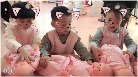 貝親母嬰撫觸:體驗媽媽養育的辛苦,學習如何照看寶寶,長大了,一定好好孝順父母。看看我們的小寶寶們,真的是好認真!