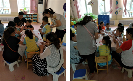 大二班以中秋經典故(gu)事為主,讓(rang)小朋友了(le)解(jie)嫦(chang)娥、玉(yu)兔等人物,并(bing)一(yi)(yi)起動手(shou)制(zhi)(zhi)作一(yi)(yi)只小玉(yu)兔包。還一(yi)(yi)起制(zhi)(zhi)作的(de)(de)冰皮月餅。小朋友和家長們玩(wan)的(de)(de)很高興(xing)。
